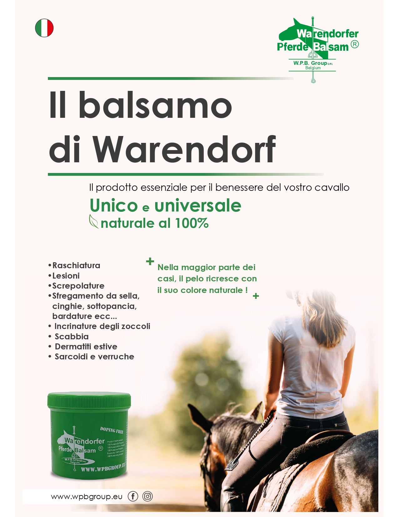 Il BALSAMO DI WARENDORFER® è una pomata cicatrizzante 100% naturale, NO DOPING, indispensabile in ogni grooming kit o scuderia!