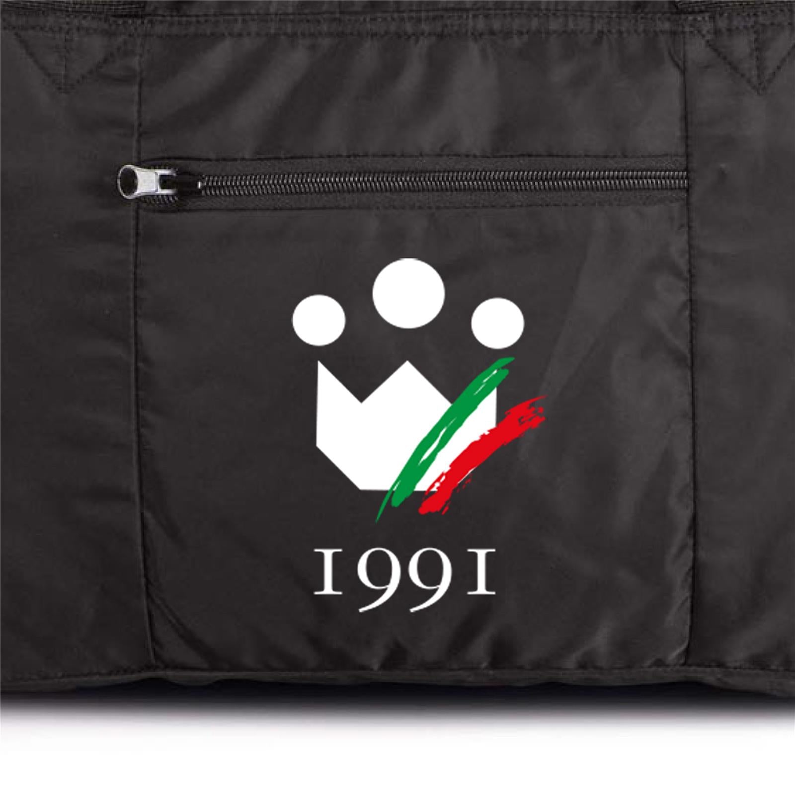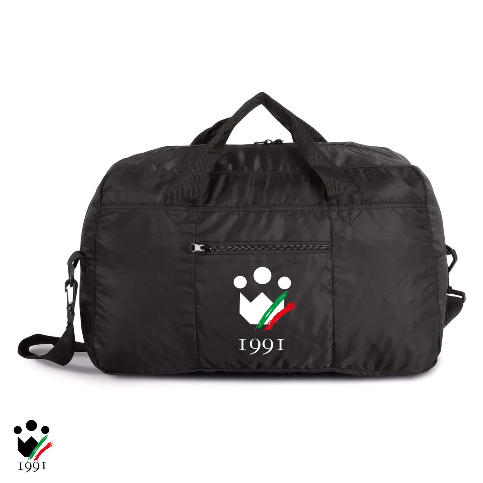 Maniglie integrate nella cucitura principale, manici robusti e tracolla staccabile.
