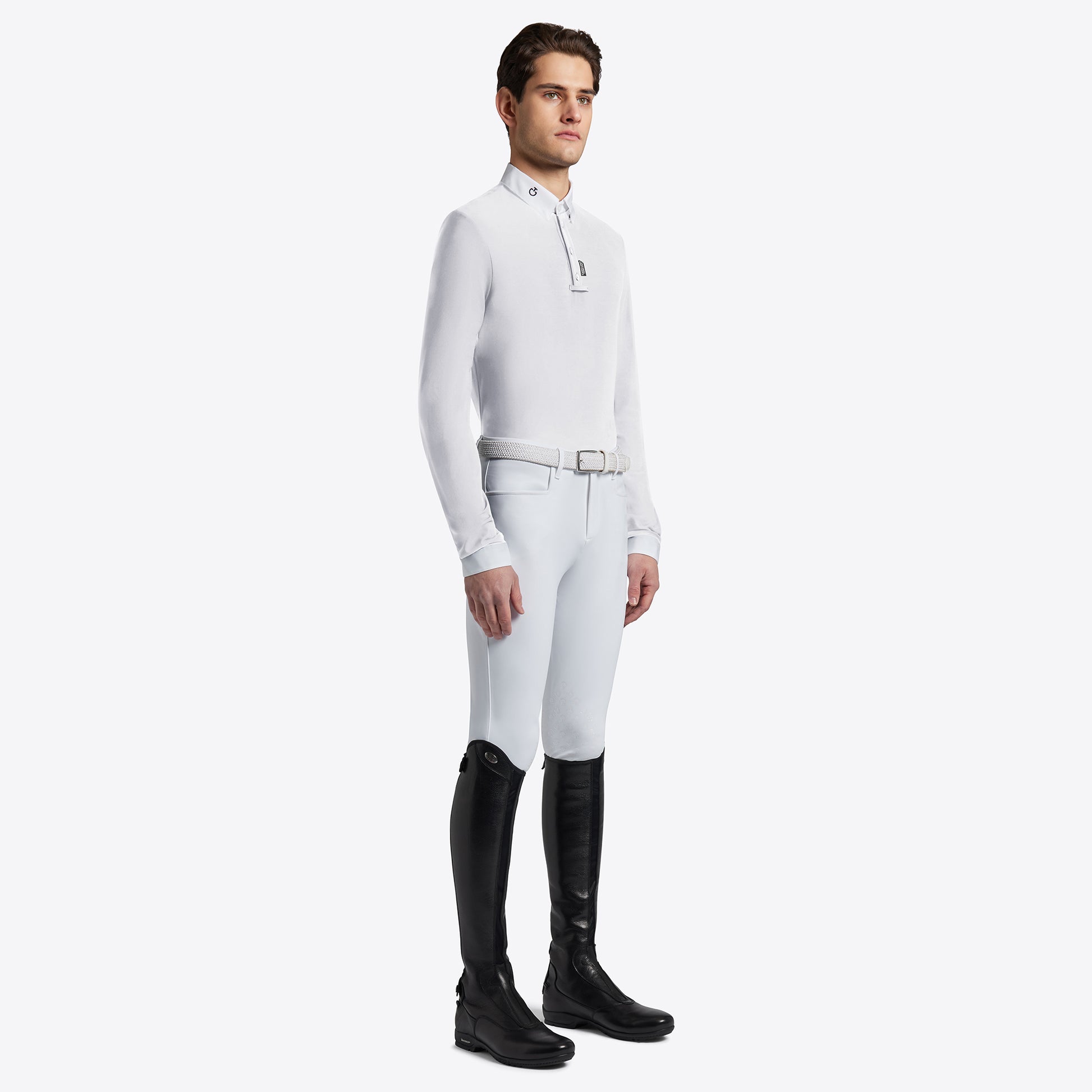 La camicia da competizione a maniche lunghe Cavalleria Toscana in jersey fleece rappresenta il connubio perfetto tra stile sofisticato e innovazione tecnica, ideale per i cavalieri che esigono prestazioni elevate e un look elegante.