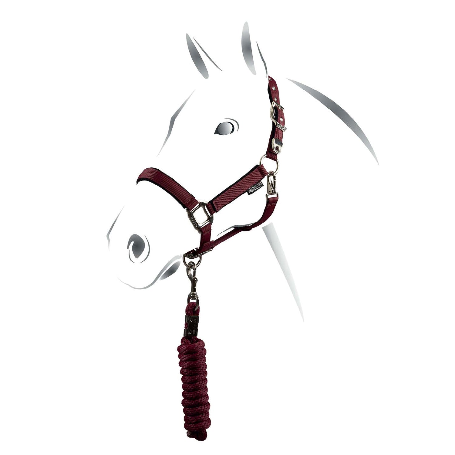 Cavezza Equestro modello Shiny Fittings, completa di lunghina coordinata. Realizzata in nylon, dotata di doppia regolazione e imbottitura in pile per un massimo comfort e una corretta vestibilità. Le fibbie sono satinate, resistenti e decorate con logo Equestro in rielevo.