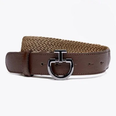 E' realizzata in pelle intrecciata, mentre la parte finale è in pelle con fibbia con logo in metallo.