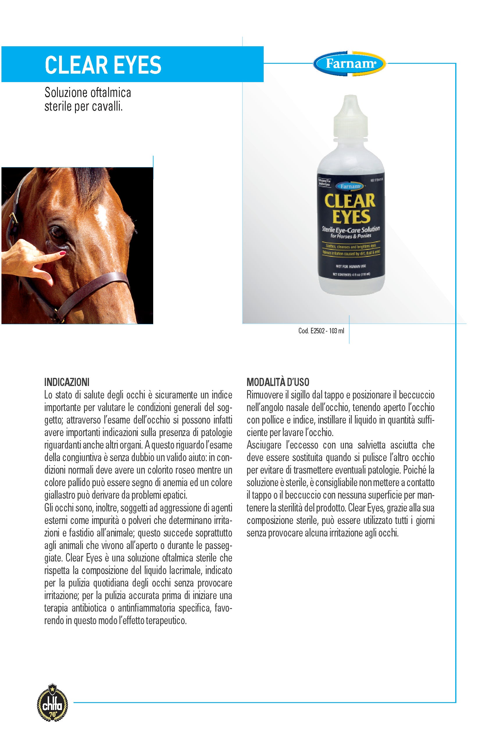 Soluzione oftalmica sterile per cavalli indicata per la pulizia quotidiana senza provocare irritazione.