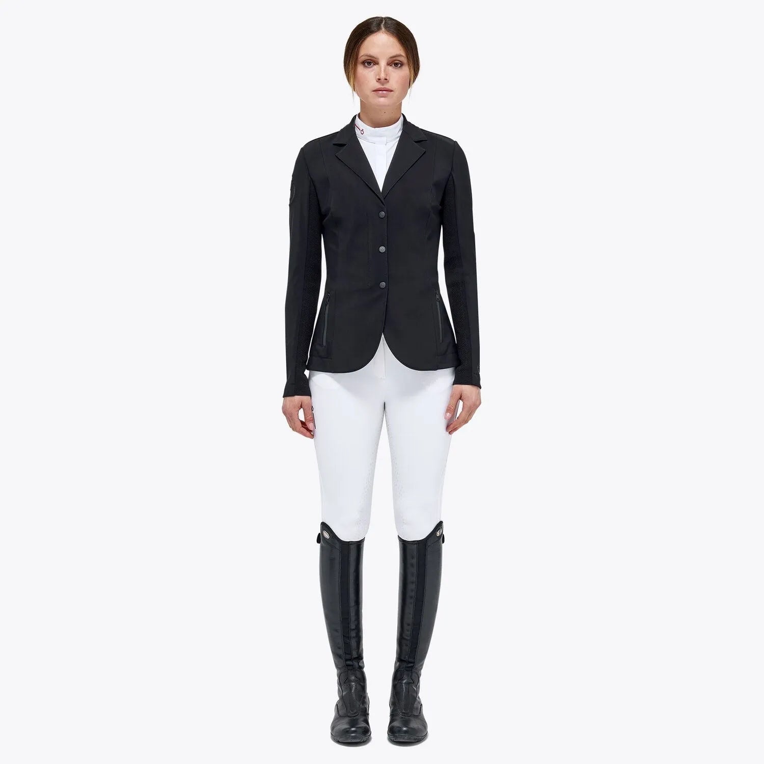 Questa giacca da concorso REVOLUTION per donna è costruita con doppio tessuto. I tessuti Sensitive si uniscono alla maglia tecnica 3D per creare un capo dall'estrema eleganza e comfort.