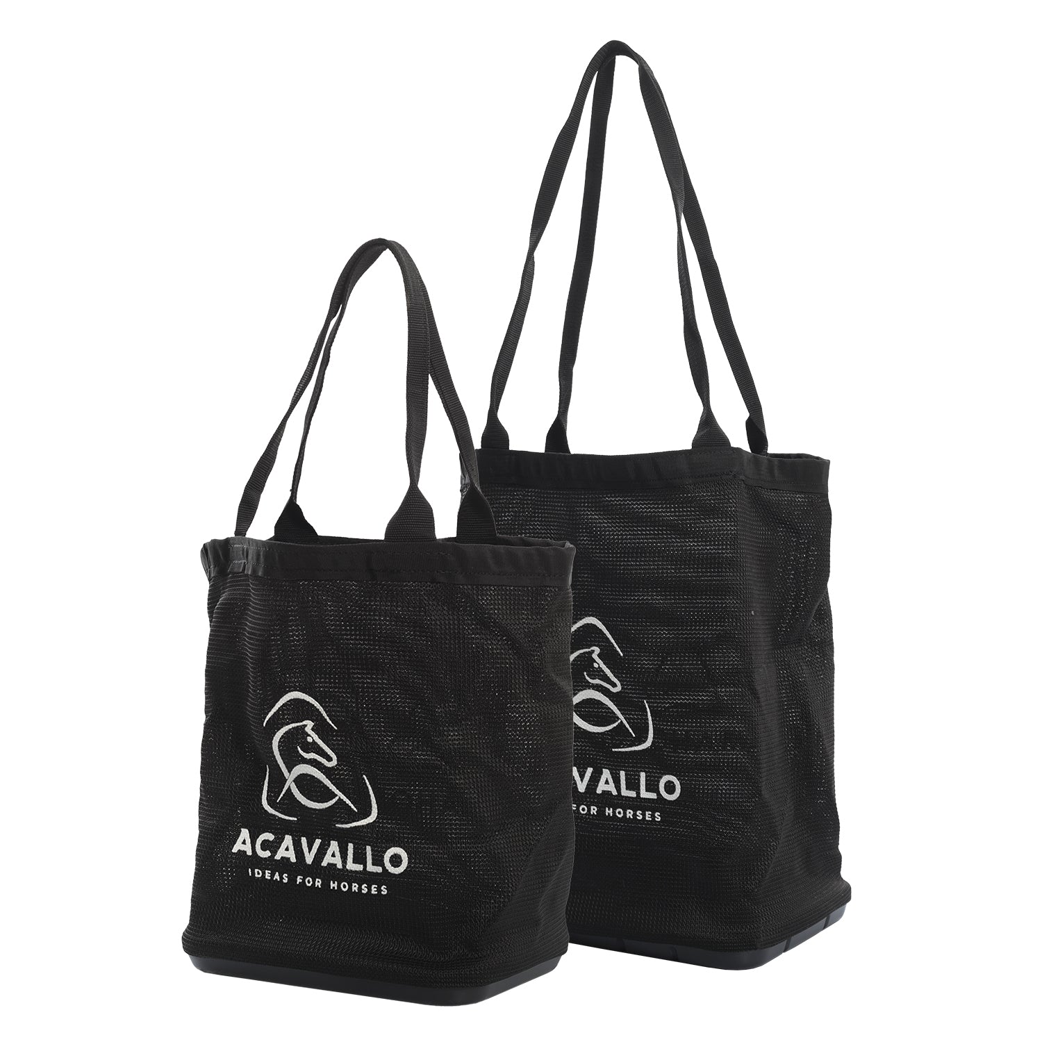 Realizzata in materiale tecnico in rete total black con base rigida e manici, perfetta per il trasporto di accessori ed equipaggiamento da equitazione.