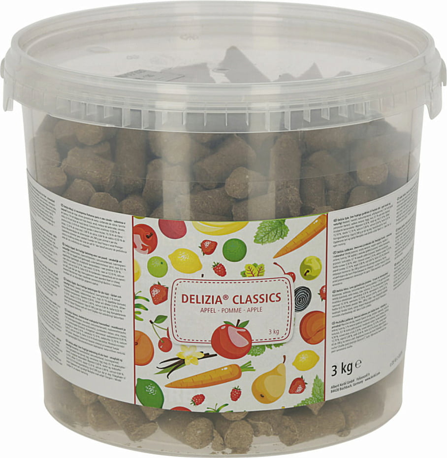I dolcetti alla mela DELIZIA sono la ricompensa ideale per il tuo cavallo. Sono fatti con ingredienti naturali di alta qualità. Sono sani e ricchi di minerali e vitamine. Così puoi ricompensare il tuo cavallo dopo uno sforzo, durante una sessione di etologia o semplicemente dargli una ricompensa con questi dolcetti alla mela.