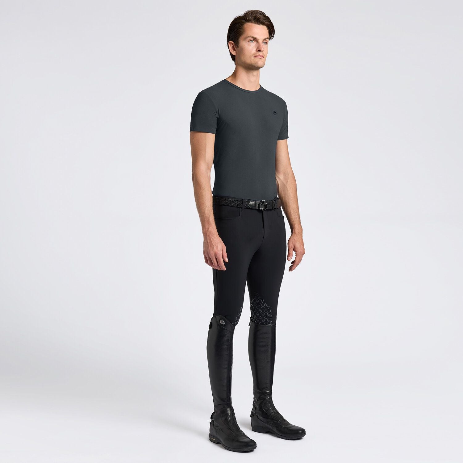 La T-shirt da uomo Cavalleria Toscana è pensata per unire comfort e funzionalità. Realizzata in tessuto tecnico elasticizzato, assicura libertà di movimento e traspirabilità, rendendola perfetta per attività sportive e momenti di relax. Il design minimal è arricchito dal logo CT termo-applicato in rilievo, che aggiunge un tocco moderno e distintivo a questo capo versatile ed essenziale.